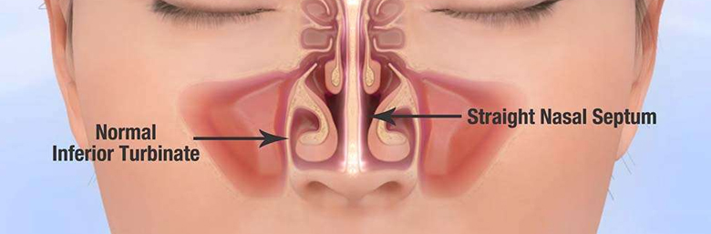Endoscopic septoplasty is a newer technique where an endoscope is used to visualize the nasal cavity to straighten the nasal septum. Most people’s septum will be deviated to one side or the other, which is not a cause for concern. However in some people the deviation is significant enough that it results in nasal obstruction. If this is the case, then they would be a candidate for septoplasty. The incision is made on the side of the deviation, 1-2cm back from the most forward part of the septum. The mucosa is lifted up on this side, then the cartilage is incised and the flap is lifted on the other side. Deviated bone and cartilage is removed, and the deviation is reduced. The flaps are stitched together with an absorbable mattress suture. The vast majority of the time, stents and packing are not required. This results in minimal post op pain, and Tylenol is adequate for postoperative pain control. Neilmed rinses are begun the next day. Not all people are candidates for endoscopic septoplasty, namely those with significant forward deviations, where a traditional approach is indicated. Please see the link below for an intraoperative video. Frequently endoscopic septoplasty is performed concurrently with endoscopic sinus surger.y In fact, inadequate septoplasty can be a reason for failure of surgery due to limited visualization of the sinuses while performing endoscopic sinus surgery.